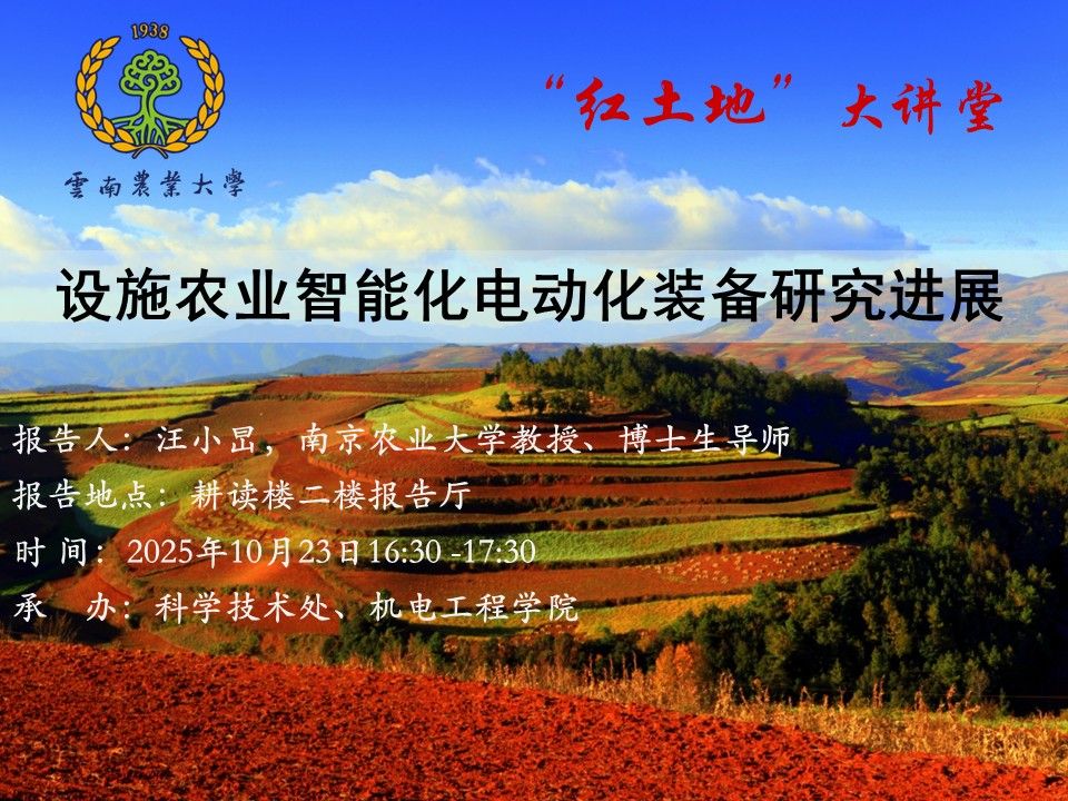 10月23日“红土地”大讲堂:设施农业智能化电动化装备研究进展