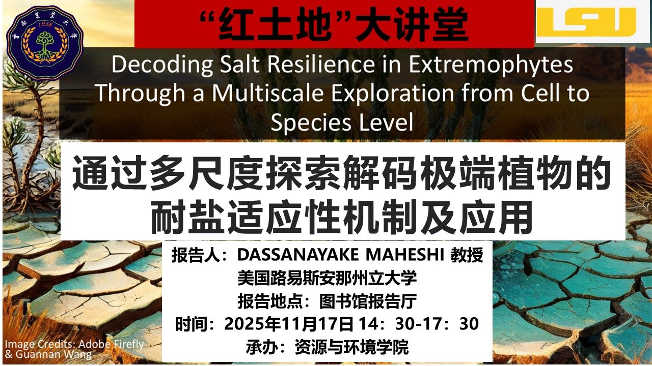 Dassanayake Maheshi教授是美国路易斯安那州立大学(Louisiana State University)生物科学系教授,国际知名植物逆境生物学与比较基因组学专家。她长期致力于探索植物在极端环境中的适应机制,尤其通过多尺度基因组学、转录组学与单细胞表达图谱研究极端植物(extremophytes),揭示其耐盐、耐逆的关键调控网络,为作物抗逆改良提供新的分子靶点和策略。