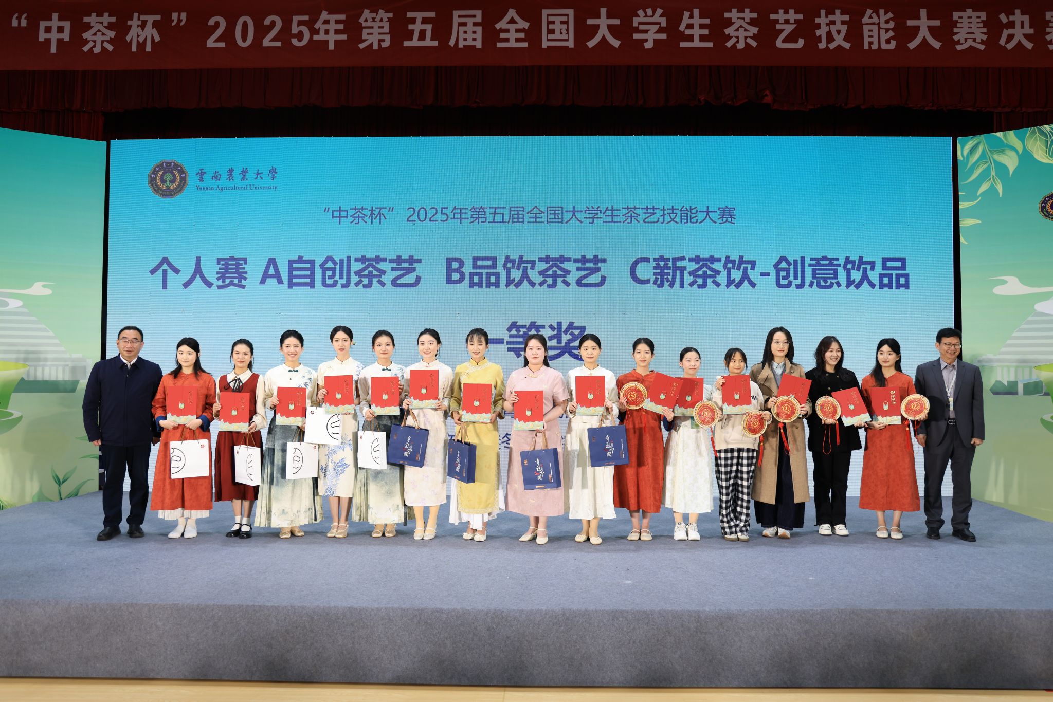 本次大赛由高等学校国家级实验教学示范中心联席会主办,学校与云南中茶茶业有限公司联合承办,学校农科专业基础国家级实验教学示范中心、云南六大茶山茶业股份有限公司协办,是全国茶学领域极具影响力的国家级赛事。赛事以弘扬中华优秀茶文化、深化“三茶统筹”发展理念为宗旨,为全国高校搭建了展示茶艺教学成果、促进学科交流的专业平台。决赛吸引了来自全国26所本科院校的139名个人赛选手和21支团体队伍报名参赛。