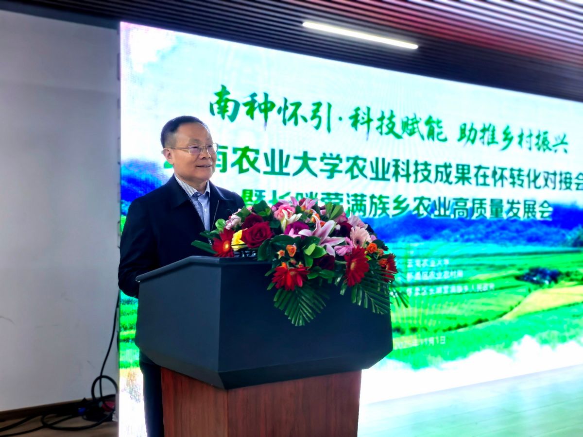 李永和在致辞中强调,学校始终以“服务国家种业振兴、助力乡村振兴”为办学使命,此次合作是校地协同、南北农业优势互补的重要探索。他明确提出三点合作方向:一是拿出诚意深化协同,充分发挥学校在作物育种、关键技术研发、种质资源利用等优势,以开放包容的姿态对接怀柔区农业发展需求,构建 “南种北引、北需南应”的资源共享格局;二是拿出实招推动落地,学校科技服务团队联合政府和企业,聚焦玉米等优质品种的迭代优化、标准化种植技术培训、市场渠道搭建,打通全产业链服务链路,确保科技成果落地;三是拿出机制保障长效,建立“校地企三方协同”合作机制,实现科技资源与地方产业需求的精准匹配,为怀柔农业高质量发展提供持续的科技与人才支撑。