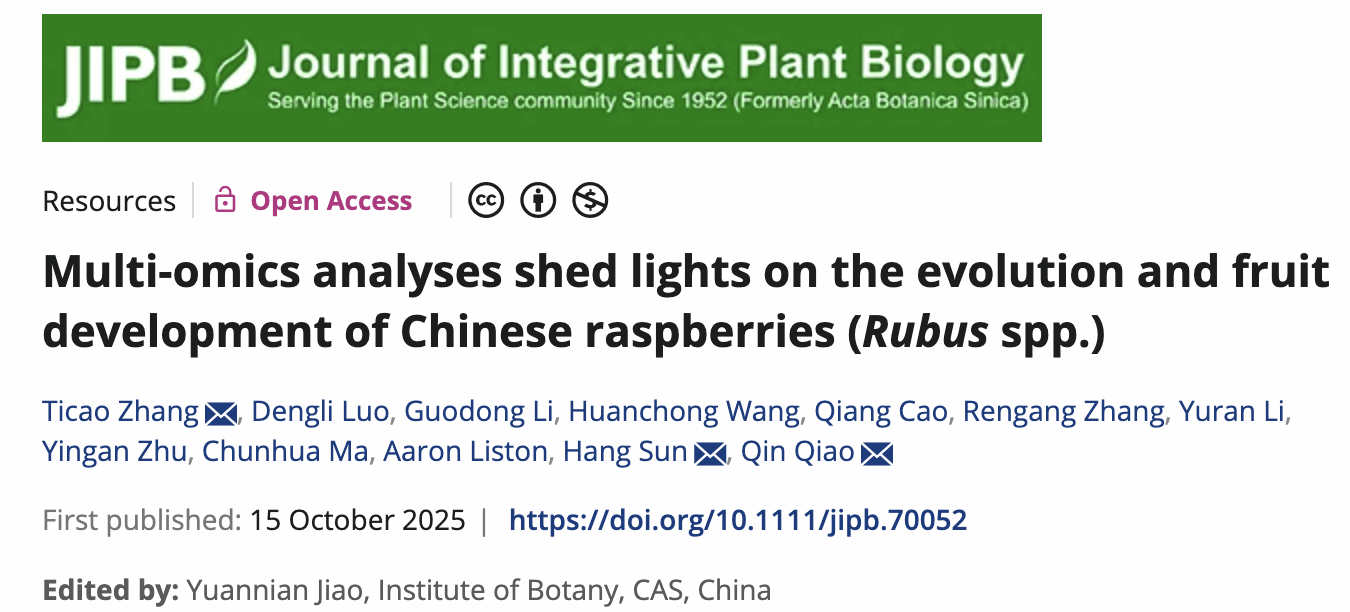 学校乔琴教授团队在树莓遗传分化与果实发育研究中取得重要进展